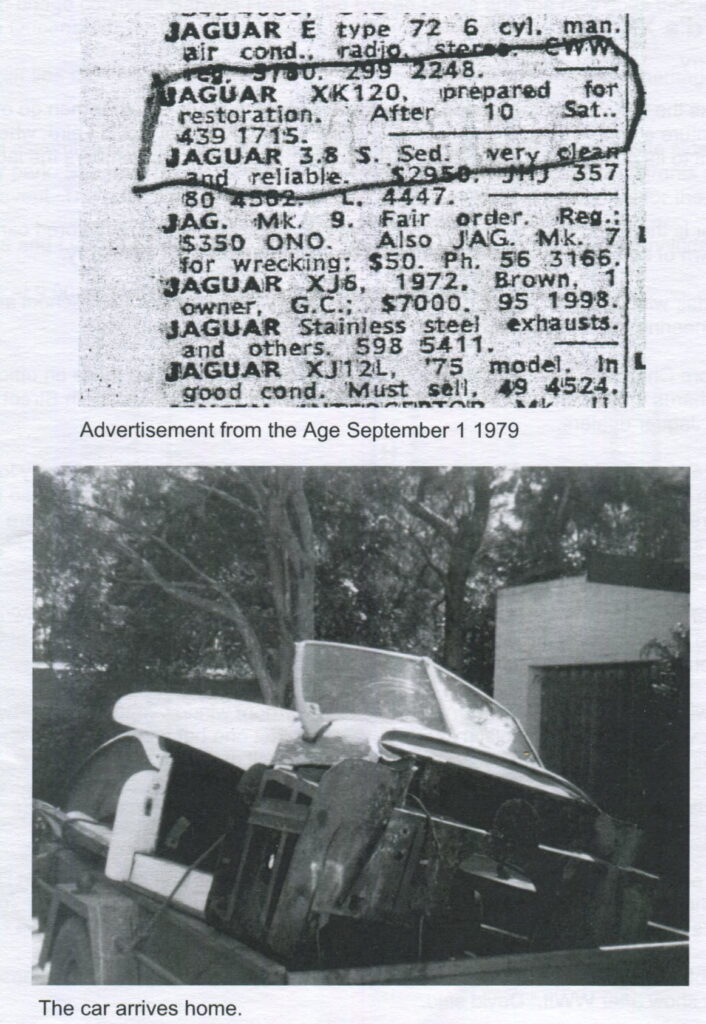 The show also saw the release of the XK 120 super sports car which was to be the test bed for Jaguar’s new twin cam motor which they were going to fit in the new Mk VII. “I yearned to obtain an XK 120 roadster as I would then have the two cars that were released at the very first motor show after WWII,” David said. It was not until September 1, 1979 and he was building a carport that he took a break to read the Age Car guide and saw under the Jaguar listing “JAG XK 120 prepared for restoration. Call after 10 a.m.”